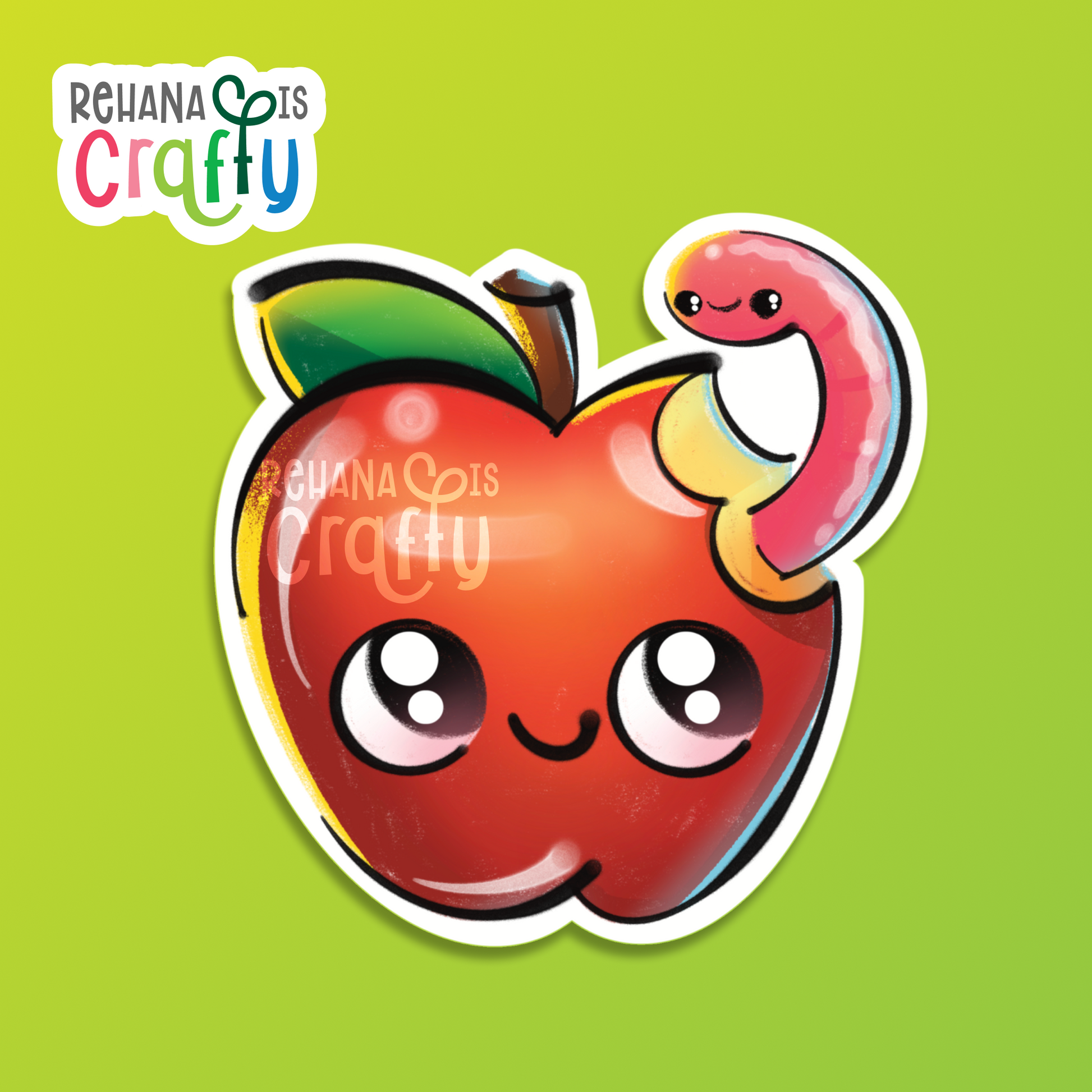 💌 Please Note: Colors may slightly differ due to monitor settings. Images shown are for display purposes only. This listing is for one Cute Apple and Worm Character Vinyl Sticker.